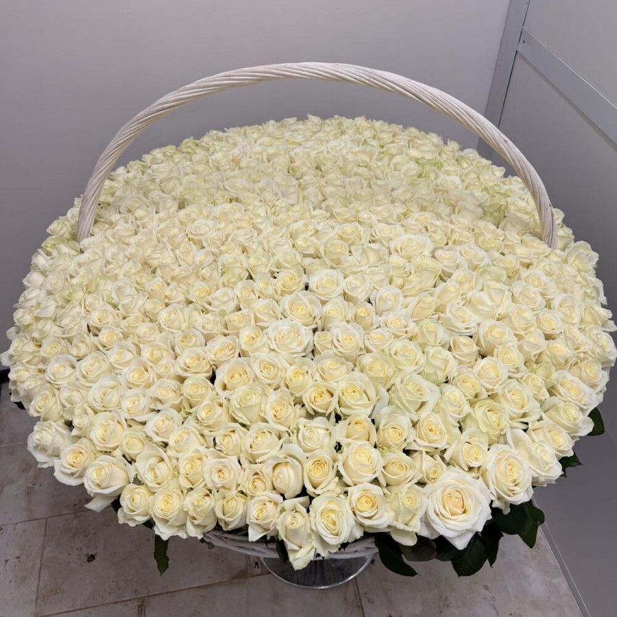 Букет из 501 белой розы в корзине «Нежность» в Сельце